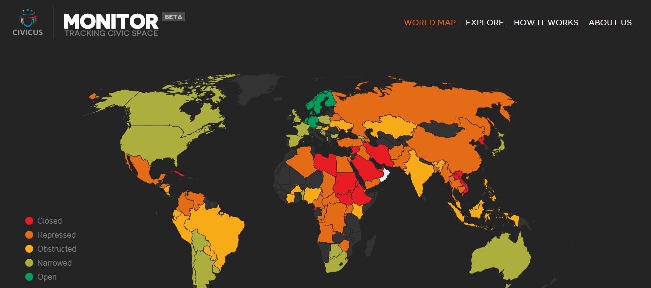 El CIVICUS Monitor es una plataforma global que monitorea en tiempo real las violaciones a las libertades de reunión, de asociación y de expresión.