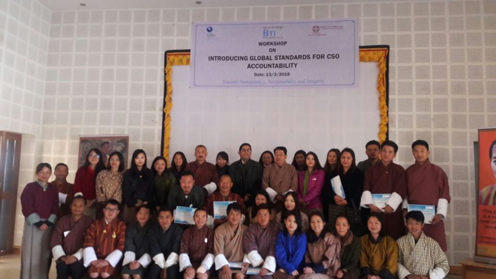 La sociedad civil de Bután, bajo el liderazgo de Bhutan Transparency Initiative, ha mostrado un gran interés en adoptar los Estándares de la sociedad civil como una herramienta para proporcionar un papel de apalancamiento en la dinámica de su participación multisectorial y promover la rendición de cuentas.