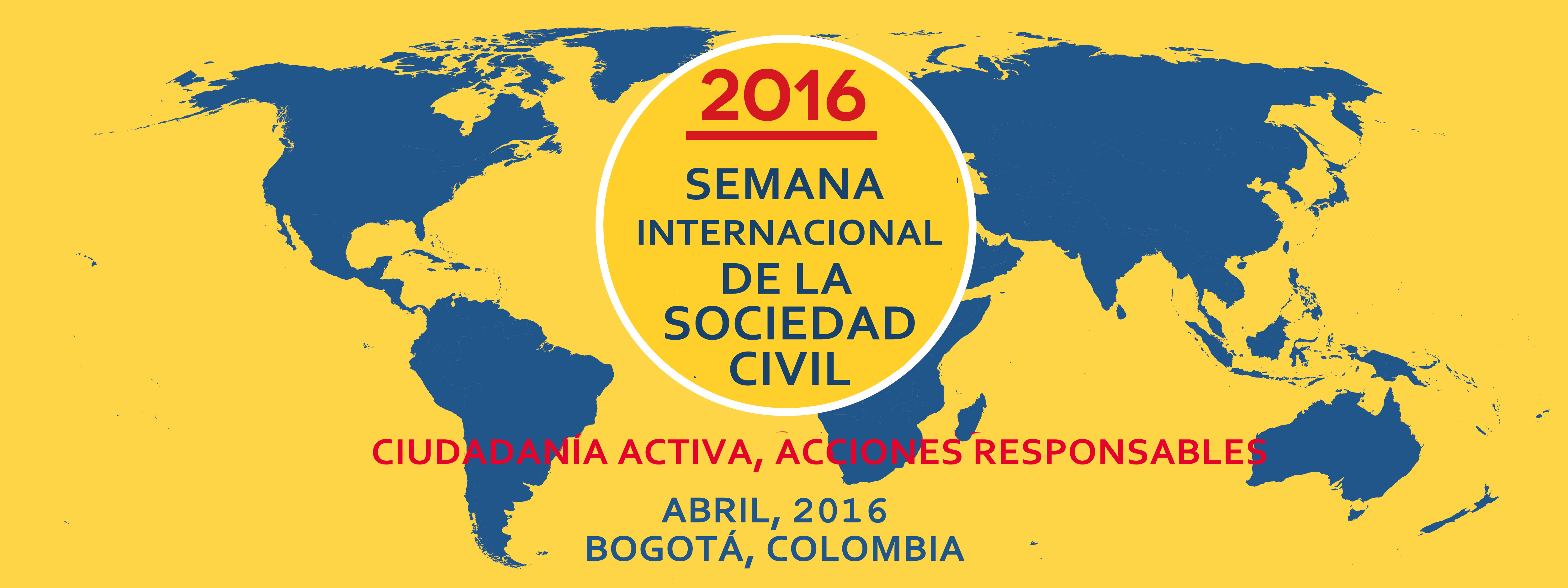 CIVICUS y la Confederación Colombiana de ONG, CCONG, serán los coanfitriones de la Semana Internacional de la Sociedad Civil 2016 en Bogotá, Colombia del 25 al 28 de abril. Bajo el lema “Ciudadanía Activa, Acciones Responsables”, la ICSW 2016 (Semana Internacional de la Sociedad Civil 2016) realizará una serie de eventos convocados por organizaciones de la sociedad civil. Los participantes podrán encontrar oportunidades de voluntariado, proyección de documentales, exhibiciones de artes y visitas locales de proyectos colombianos. La semana culminará con la Asamblea Mundial de CIVICUS y la ceremonia de los Premios a la Innovación Nelson Mandela- Graça Machel.