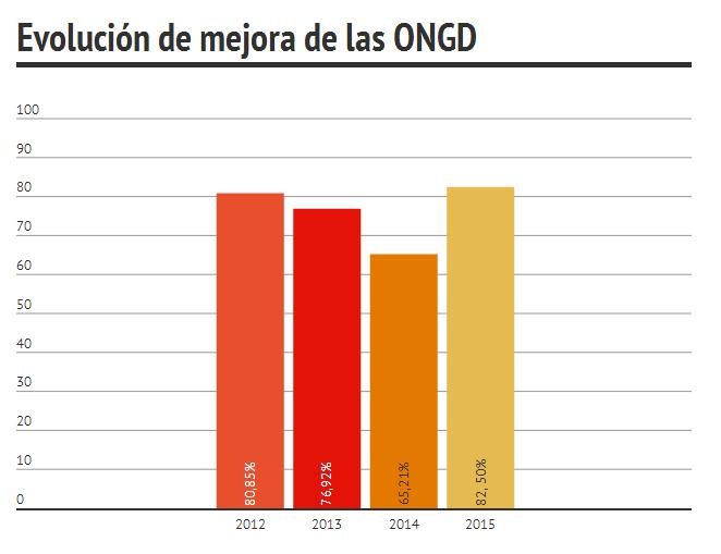 Los resultados son por otra parte promisorios, ya que es el año en que el porcentaje más alto de ONGD, comparado con años anteriores, que superan todos los bloques que evalúa la herramienta de transparencia y buen gobierno. El 82,5% de las organizaciones evaluadas presenta buenos resultados en todos los bloques, demostrando el valor de la Herramienta para el fomento de la mejora constante de las organizaciones.
